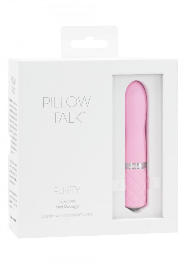 “Flirty” è abbastanza piccolo da stare nella borsetta, il che significa che può darti piacere quando sei in viaggio. Il vibratore ha un albero rettilineo con una punta leggermente arrotondata e scanalature stimolanti: è davvero un piacere puro. Scivola nella tua zona intima quasi da sola, grazie alla sua superficie vellutata e morbida. Una volta posizionato, puoi usare il pulsante nella parte inferiore dell’albero per lasciar sfogare la sua potenza. Tuttavia, questo pulsante non è un normale pulsante: è una vera pietra Swarovski che brilla splendidamente quando cattura la luce. Questo vibratore non ha solo un bell’aspetto, ma ha anche molto da offrire. “Flirty” ha un potente motore in grado di fornire vibrazioni profonde (con la semplice pressione di un pulsante) che ti catapulteranno in estasi. Premi il pulsante più a lungo per regolare le vibrazioni fino a trovare quella giusta per te. Il vibratore ha vibrazioni a più velocità e una funzione Quick-Off che lo spegne immediatamente. Ha anche un blocco da viaggio che impedisce che si accenda e quindi evita momenti imbarazzanti. Se il tuo nuovo amante rimane senza energia, puoi ricaricarlo facilmente con il cavo USB incluso: sarà pronto per il prossimo momento di piacere.Che cosa stai aspettando?!